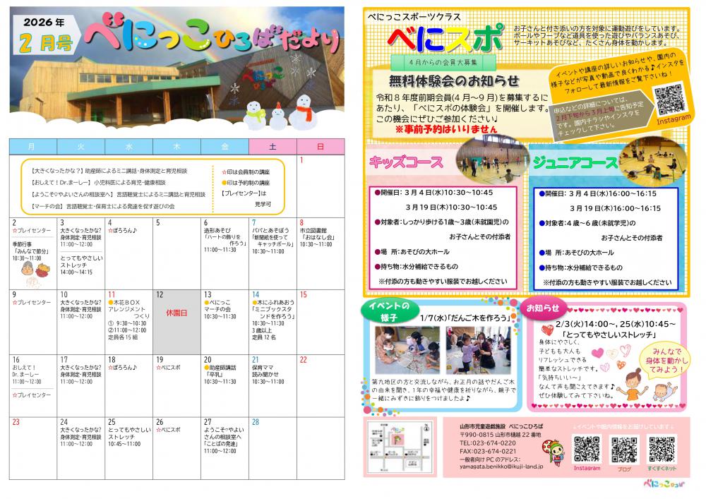 べにっこひろばだより 令和8年2月号